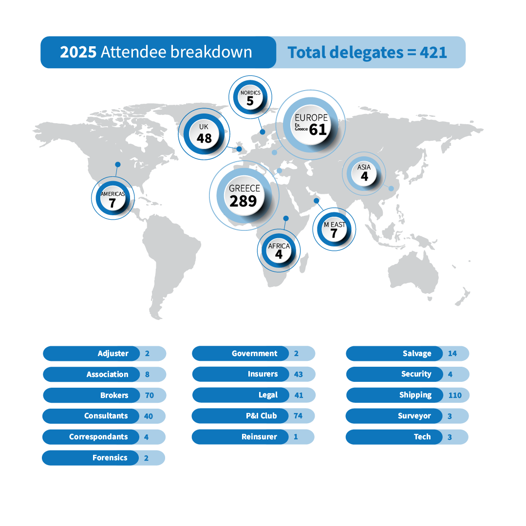 The next Marine Insurance Greece will take place during 6th & 7th May, 2026 at The Eugenides Foundation, Athens. The last event brought together more than 400 shipowners, brokers, insurers and third parties over two days. The conference is a ‘must-attend’ and will be the biggest gathering of marine insurance professionals in Greece. Punctuated with numerous networking opportunities, including the opening night party, the conference hopes to further deliver on the success of 2025